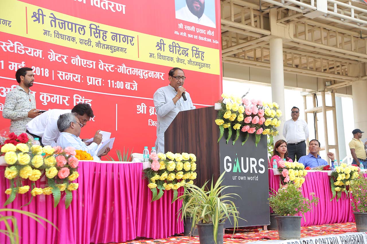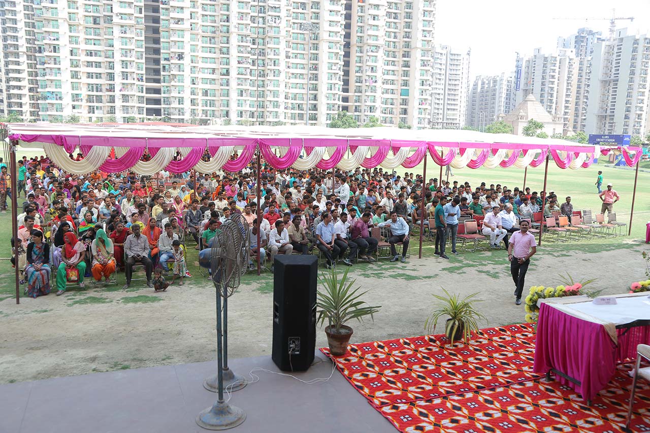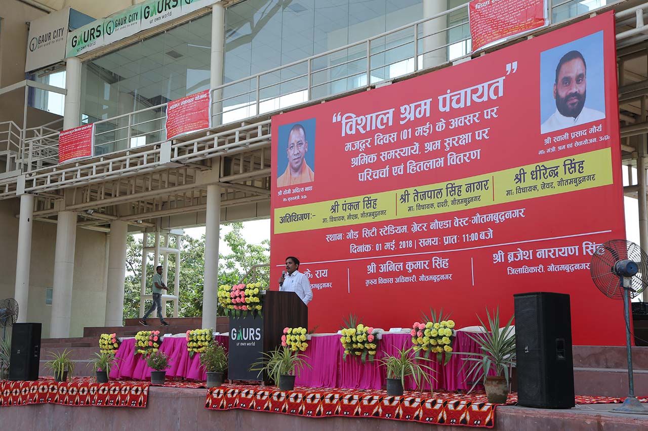 Labour Panchayat held at Gaur City in collaboration with Gr Noida Authority on 1st May Labour Day highlighting the medical and welfare schemes in presence of Sh Tejpal Nagar, MLA, Dadri, Gautam Buddh Nagar